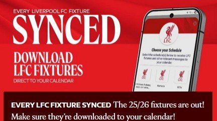 EVERY LFC FIXTURE SYNCED The 25/26 fixtures are out! Make sure they’re downloaded to your calendar!